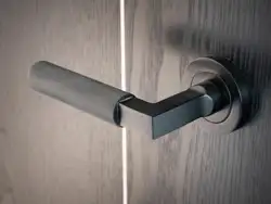Standing at an impressive 2.5 metres, the floor-to-ceiling doors command attention while meeting stringent FD30 fire safety standards. Each door is adorned with Piceus, a natural Oak veneer from the Forza Creato range, adding warmth and sophistication. For a touch of elegance, Niveus eucalyptus inlays—also from the Forza Creato range—are positioned 150mm from the edge, creating a subtle and effective visual detail. This harmonious blend of form and function not only enhances the overall aesthetic but also reflects the careful consideration given to every aspect of the design.