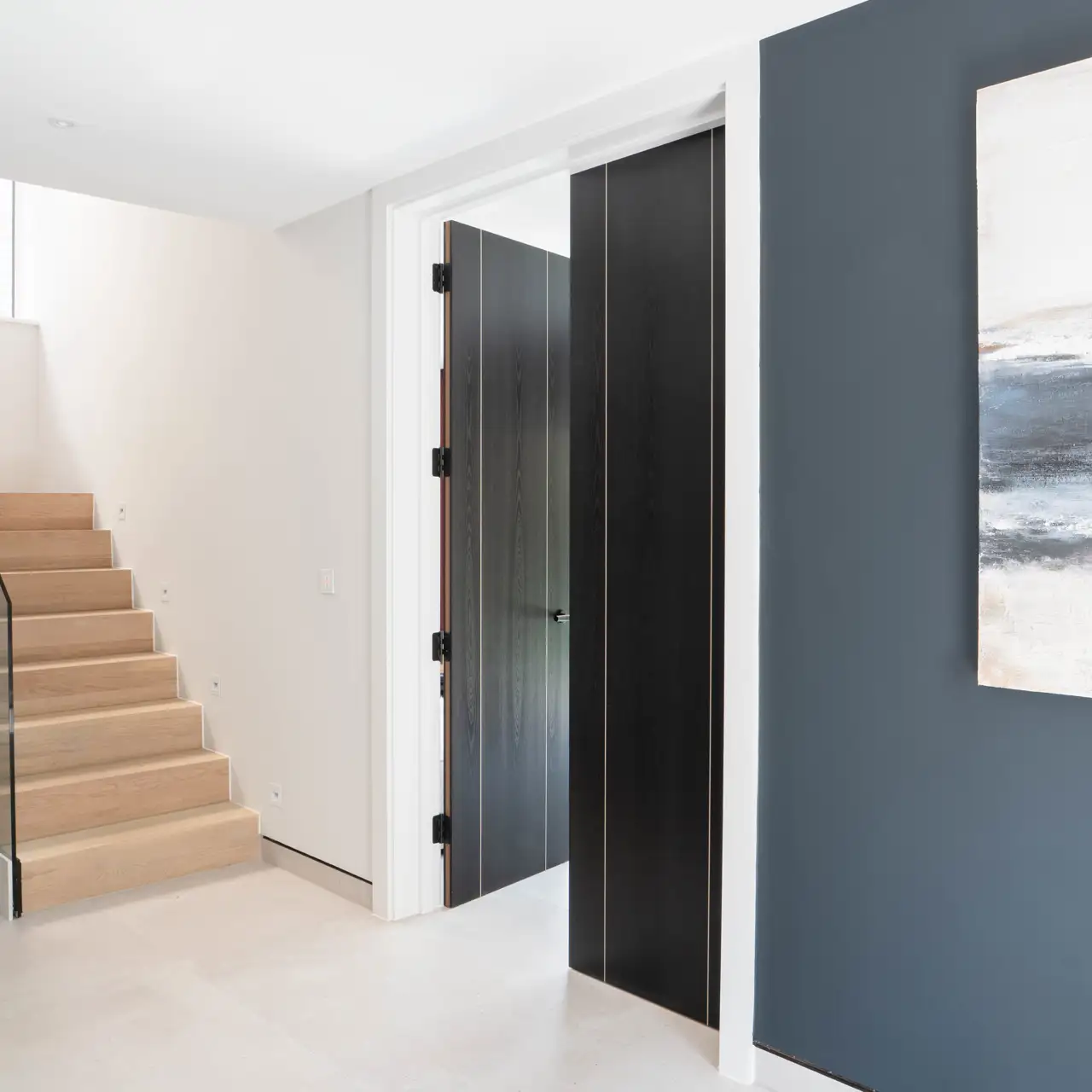 To bring this architectural vision to life, LG Building—an award-winning construction firm with over two decades of expertise in domestic and commercial projects across Dorset and Hampshire—partnered with Forza Doors for a truly impactful interior design element.