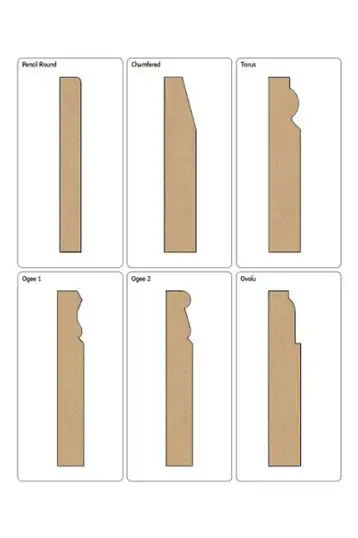 The standard range of skirting, architrave and window board are available in timbers Ash, Cherry Oak, Steam Beech, Maple, American Black Walnut and primed MDF.